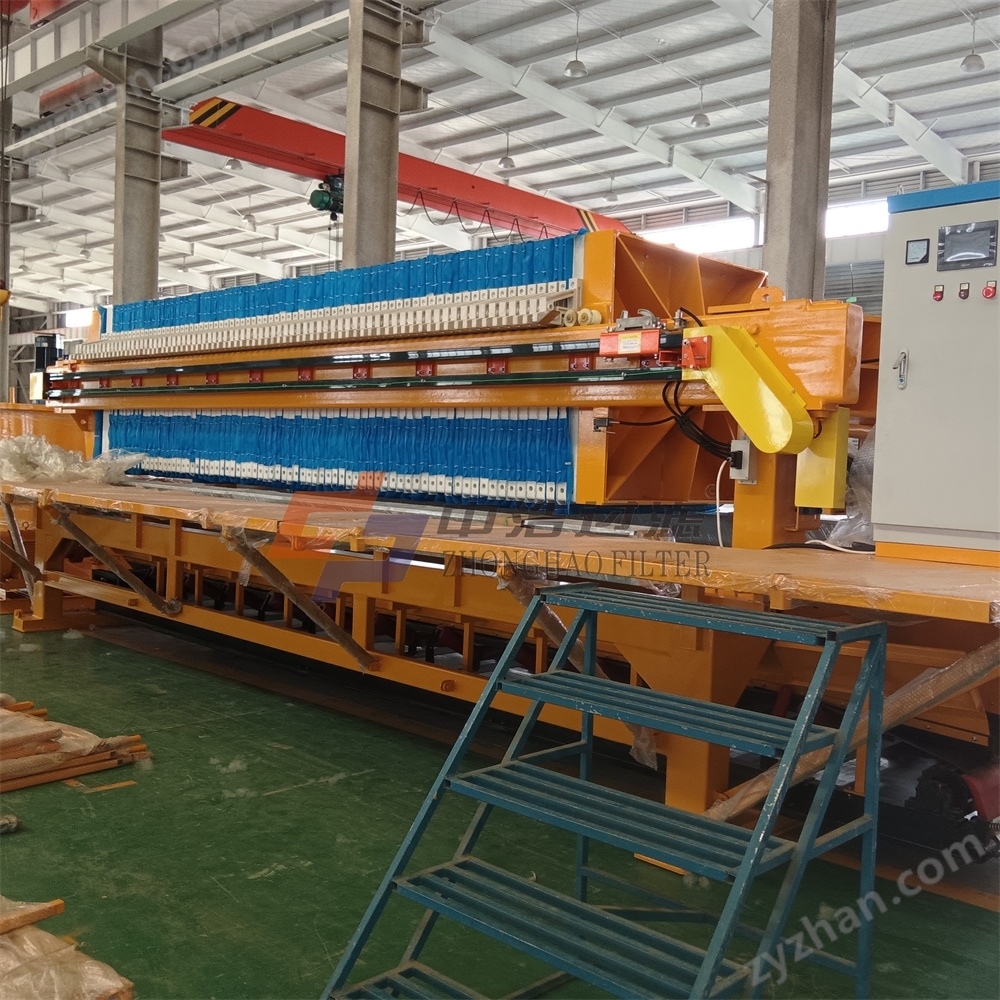 壓緊力均勻穩(wěn)定: 液壓油具有不可壓縮性(在高壓下忽略微小壓縮性),當(dāng)系統(tǒng)壓力建立后,通過優(yōu)化的油缸設(shè)計和管路布局,能將壓力均勻傳遞至濾板組的整個接觸面。多缸系統(tǒng)通過同步控制技術(shù)(如機(jī)械同步或伺服控制)確保受力均衡,有效防止濾板錯位、噴漿。