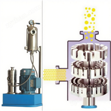 分散機(jī)采取直立式設(shè)計(jì),由1-3個(gè)工作腔組成,在馬達(dá)的高速驅(qū)動(dòng)下,物料在轉(zhuǎn)子定子之間狹窄間隙中高速運(yùn)動(dòng),形成紊流,物料受到更強(qiáng)液力剪切、離心擠壓、高速切割、撞擊和研磨等綜合作用,從而達(dá)到分散、乳化、破碎的效果。被加工的物料本身和物理性質(zhì)和工作腔的數(shù)量以及控制物料在工作腔中停留的時(shí)間決定物料粒徑的分布范圍及均化、細(xì)化的效果和產(chǎn)量大小。
